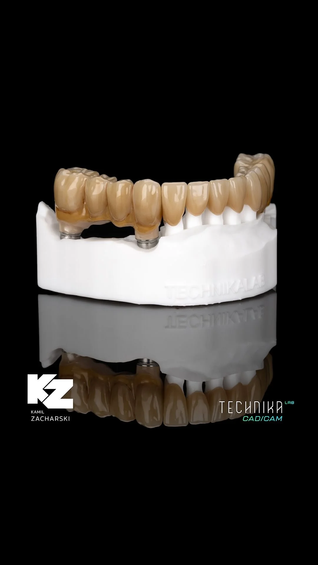 Dla zwiększenia wytrzymałości prac pełnołukowcyh na implantach wzmacniamy je belkami wykonanymi z Tytanu lub Triloru.